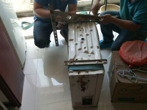 4、拆室外機:拆卸室外機時應卸放的同時注意平衡避免振動搖晃,最后用塑料包好以便搬運。