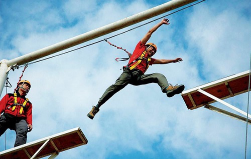 在拓展訓(xùn)練中,會(huì)讓隊(duì)員懂得應(yīng)該怎樣在逆境中求生存,明白了雖然一個(gè)人的能力有限,但是意志和精神的力量是無(wú)限的。
