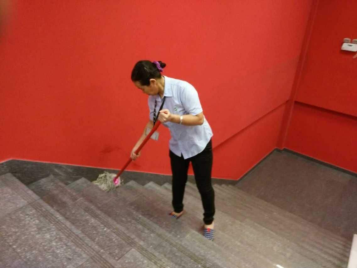 8、地面的清洗:其他保潔工作做完以后,就是地面的清洗了,地面也要分材質(zhì),是木地板的、還是瓷磚的、或是石材的,當分清后就選擇專用清潔劑稀釋后,開始清洗。地面上的膠漬可用刀片清除,頑固的可用去膠劑處理;一道工序做完后,應由領(lǐng)班全面檢查一遍后,確認無遺留后撤離現(xiàn)