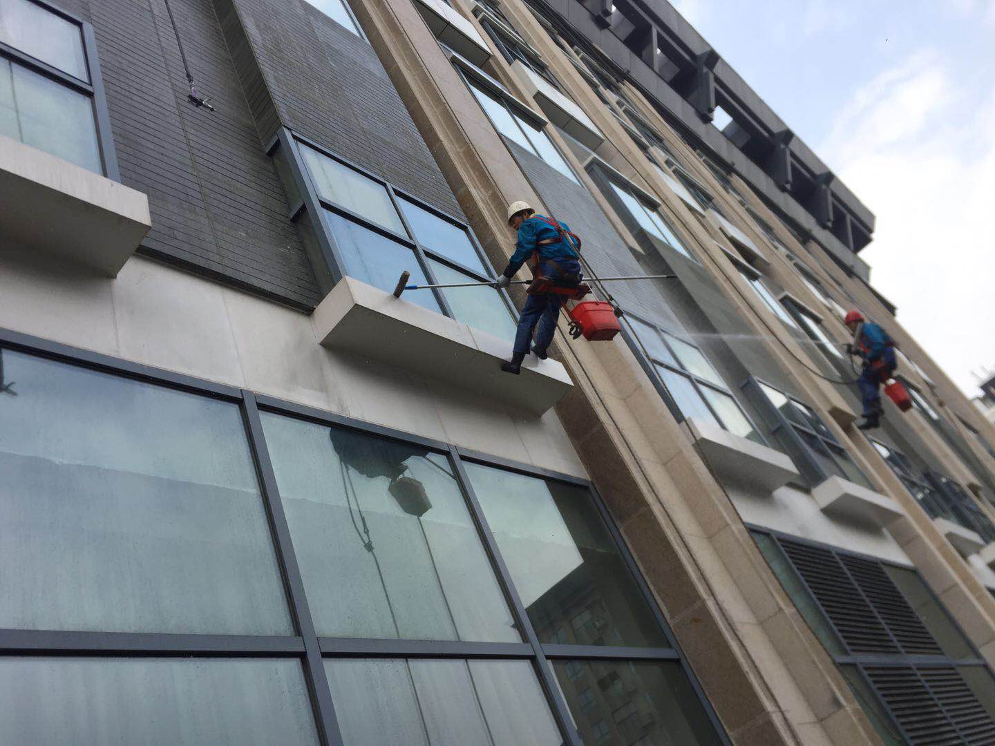 建筑物在建成以后,外墻在建設(shè)中都會(huì)殘留建筑垃圾的二次污染,因此在投入使用之前都要進(jìn)行一次徹底的保潔,保潔中外墻清洗是一項(xiàng)高難度的工作,因此要規(guī)范操作,確保安全第一。