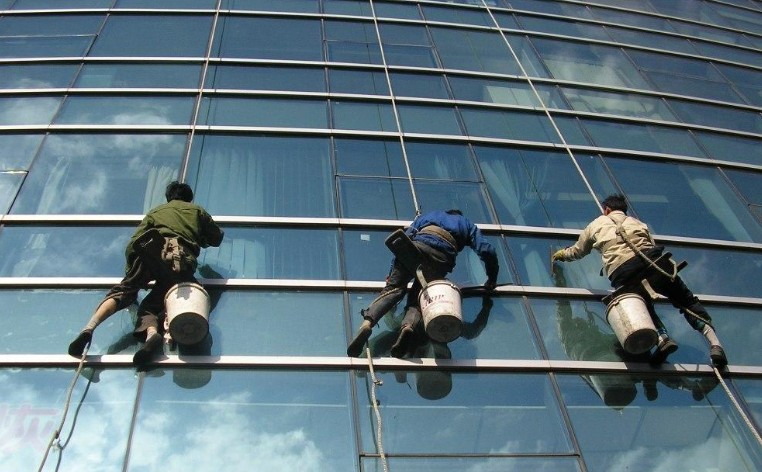 1、高空外墻清洗一般利用高空操作繩、安全繩、高空坐板(或吊板、吊籃等)方式清洗。吊板方式主要是用吊繩以及吊板將人吊到工作位置來進行清洗。這種比較簡單,成本也是比較低的,只要工人身體素質好、繩子連接的足夠牢固就可以進行,一般的大樓都可以用這種方式來進行清洗,但是這種方式的操作必須要使安全措施到位,否則危險性還是比較大的,造成傷亡事故的都是因為安全措施不到位造成的。