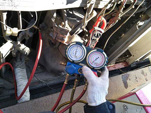 (3)在給空調(diào)充氟過程中,觀察壓力表指針變化,使壓力表維持在0.45-0.5MPA。