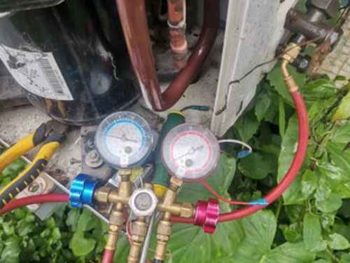 3.測(cè)壓加氟;夏季觀察低壓,環(huán)境溫度約32攝氏度時(shí),壓力控制在0.45MP左右;冬季觀察加熱時(shí)的高壓,壓力穩(wěn)定后控制在1.7MP左右。