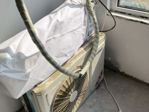 5、在用綁帶纏繞制冷管和電線排水管也有講究,要按照安裝空調(diào)標(biāo)準(zhǔn)操作,否則纏繞不多時(shí)會(huì)造成雨水順延塑料膠帶流進(jìn)屋里的現(xiàn)象。