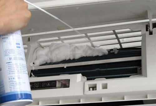 5.空調(diào)泡沫清潔劑在使用前,要先充分的搖勻,再均勻噴灑到散熱片上。注意得傾斜二十度角來噴,很臟的可以多噴幾次。然后等十分鐘左右。