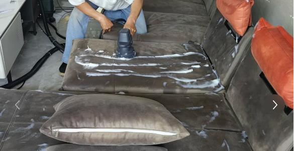 清洗過(guò)程:按照清洗方案,進(jìn)行沙發(fā)清洗。